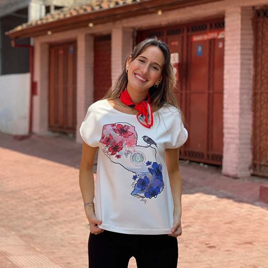 Artemera Mapa del Paraguay con Flores y Pitogue