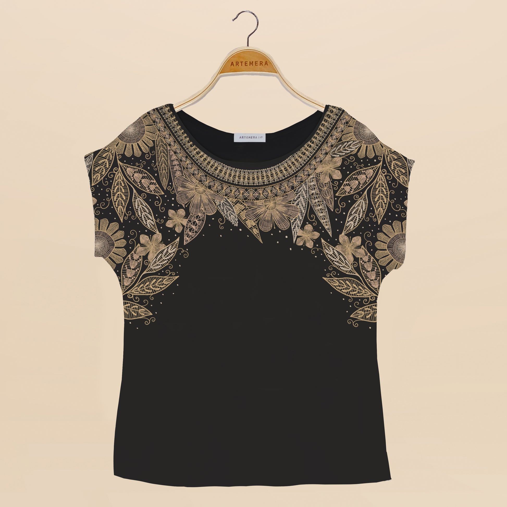 Blusa negra mangas japonesas, con diseño de ñandutíes 🌺😍