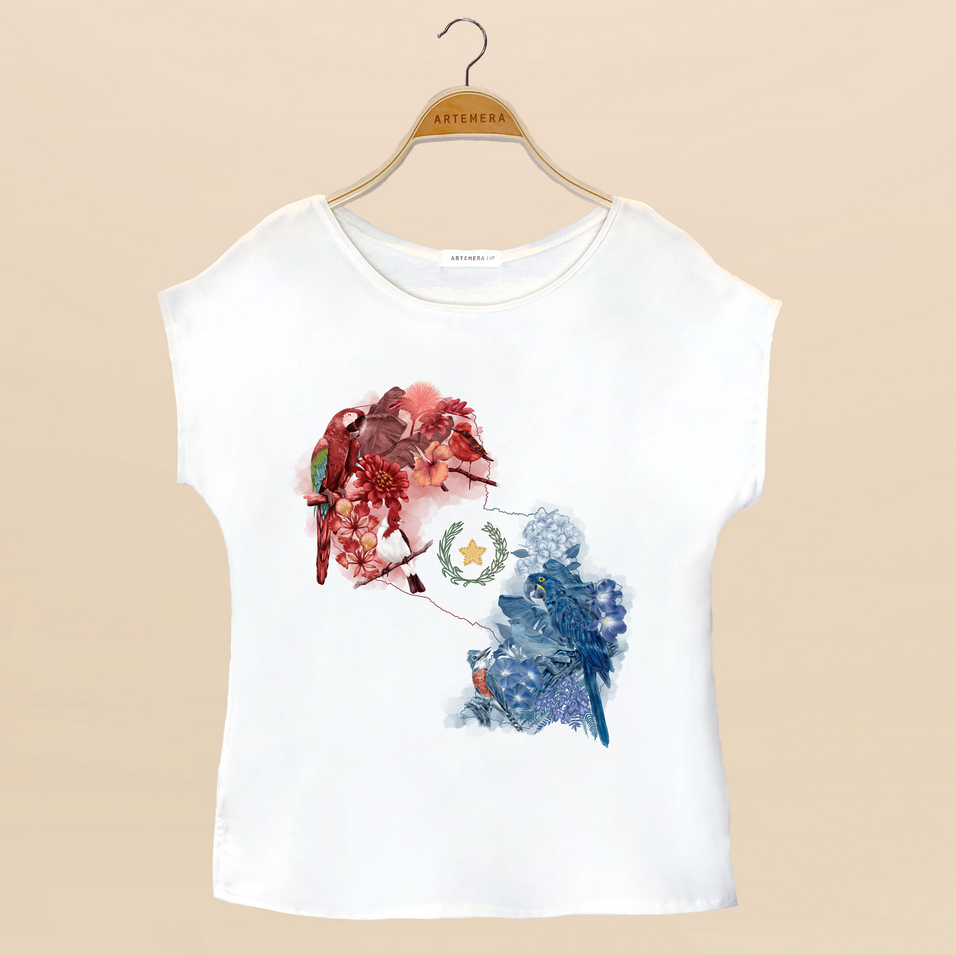 Blusa con estampa del mapa de Paraguay. Mangas japonesas y tajos a los lados :)
