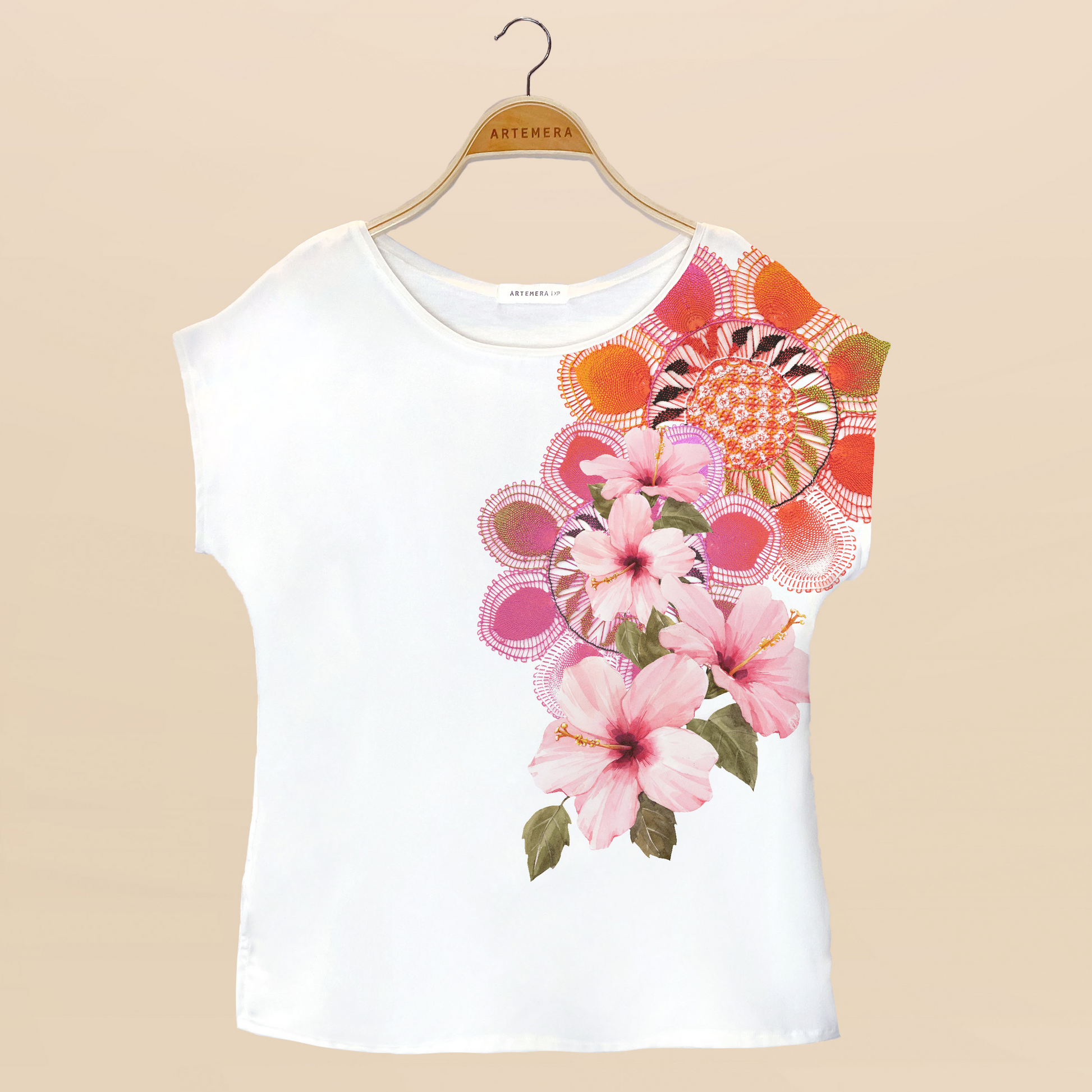 Blusa para mujer hecha en Paraguay, con diseños de ñandutíes y flores :)