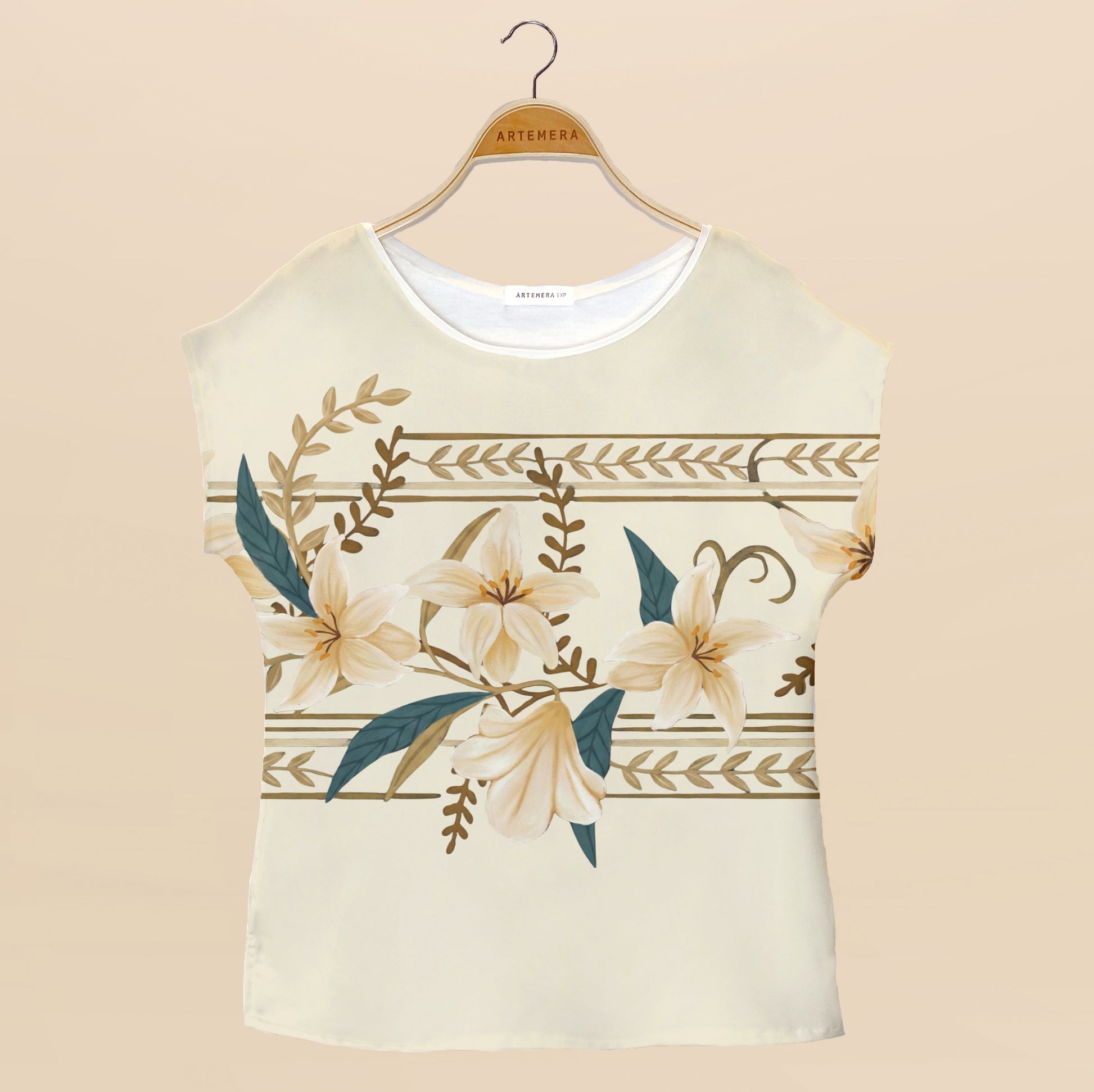 Blusa con estampado floral como nos encanta 😍 Flores suaves en tonos naturales con detalles de guardas que enmarcan el diseño y le dan un toque especial. Mangas japonesas y tajos a los lados :)