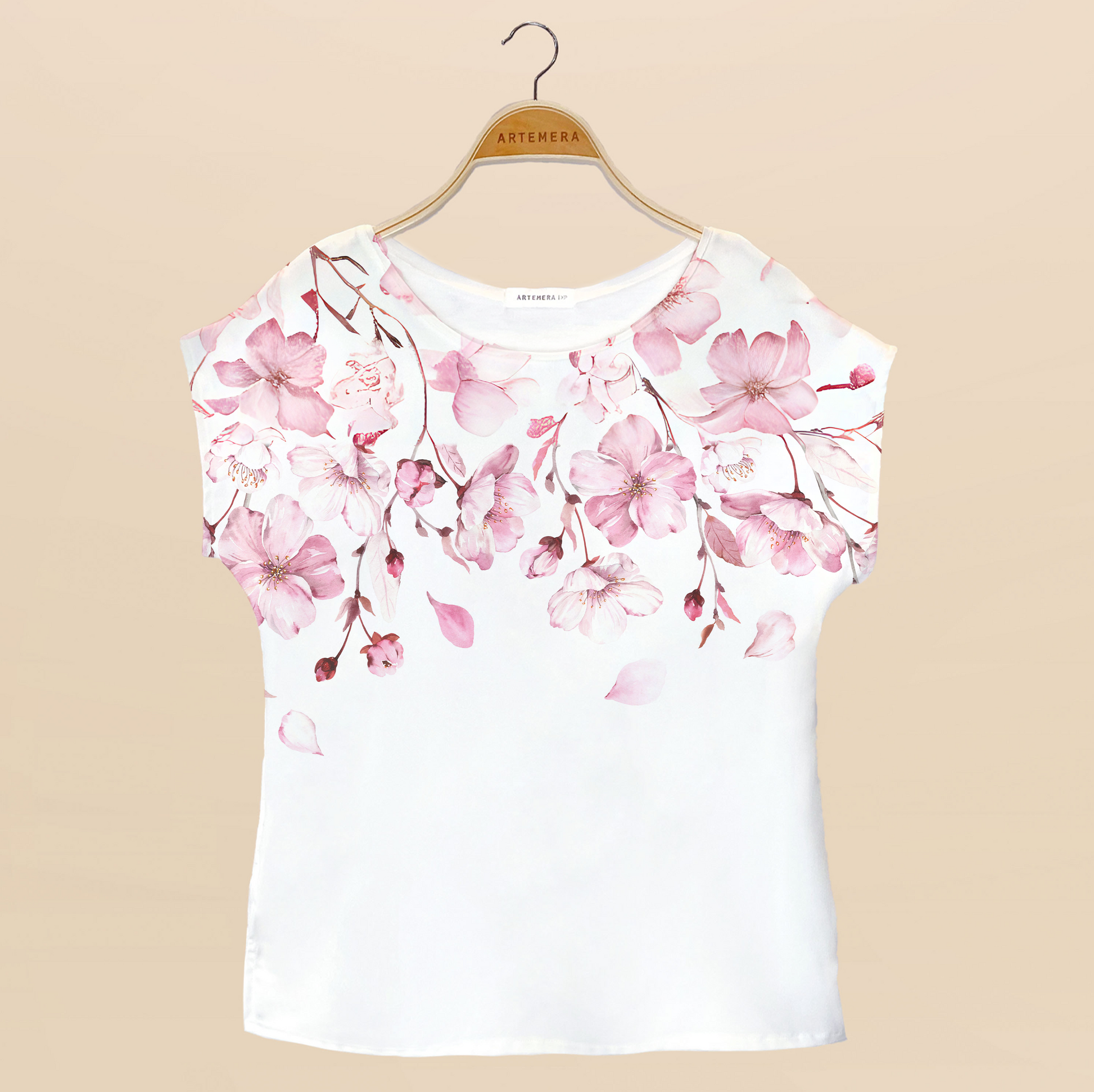 Blusa marfil, mangas japonesas y tajos a los lados 😍 Estampada con flores rosas en estilo acuarela. Un diseño femenino y elegante, inspirado en el espíritu de Octubre Rosa. 🌸