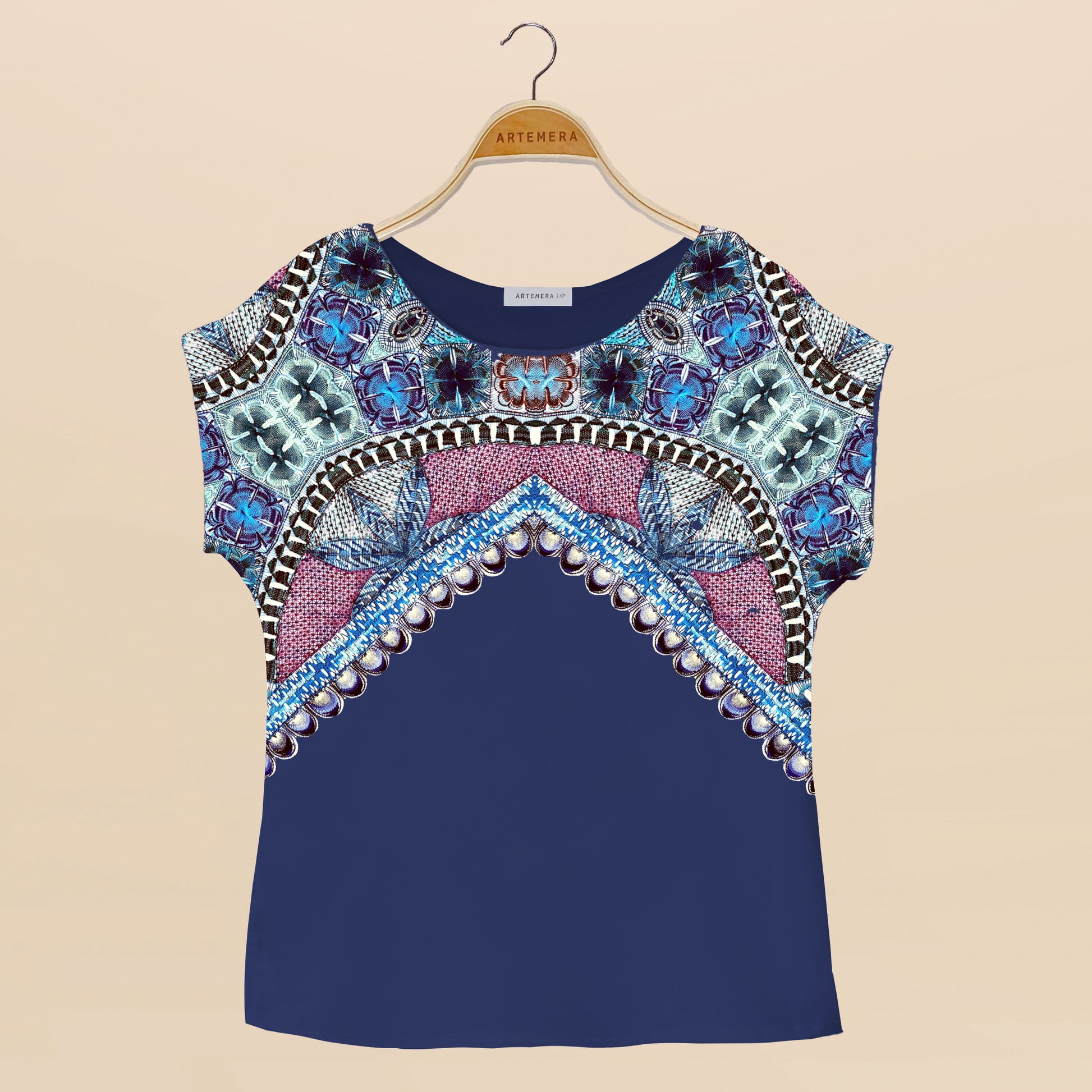 Blusa para mujer color azul con diseño de ñandutí sublimado 🥰