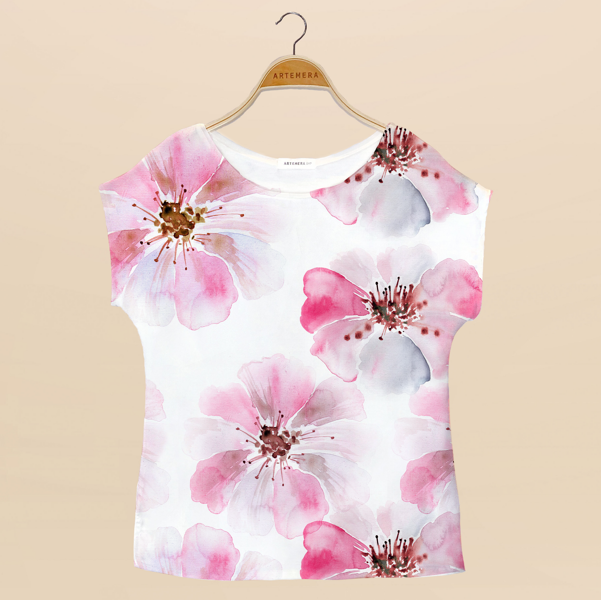 Blusa marfil, mangas japonesas y tajos a los lados 😍 Estampada con flores rosas en estilo acuarela. Un diseño femenino y elegante, inspirado en el espíritu de Octubre Rosa. 🌸