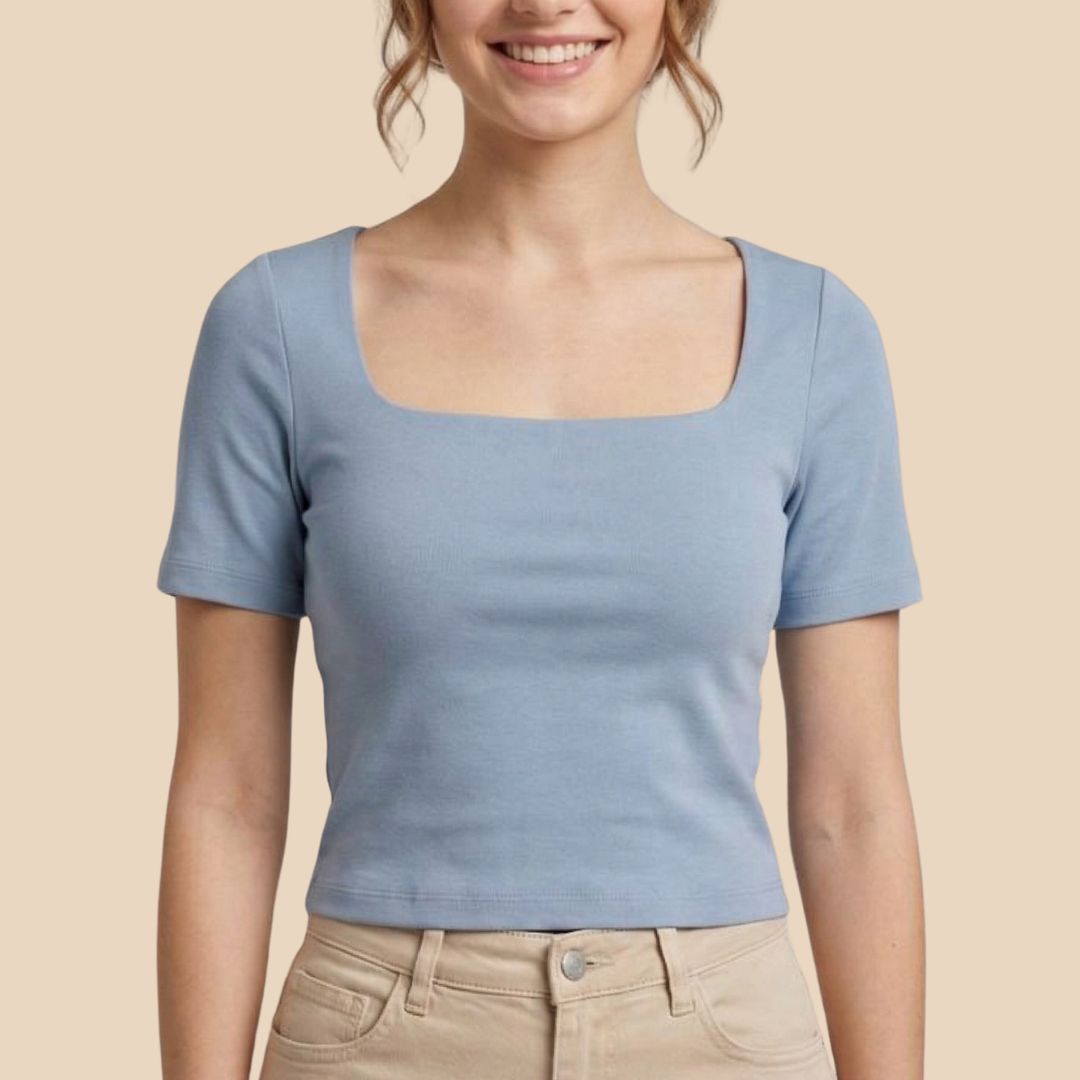 Blusa básica con escote cuadrado y mangas cortas.