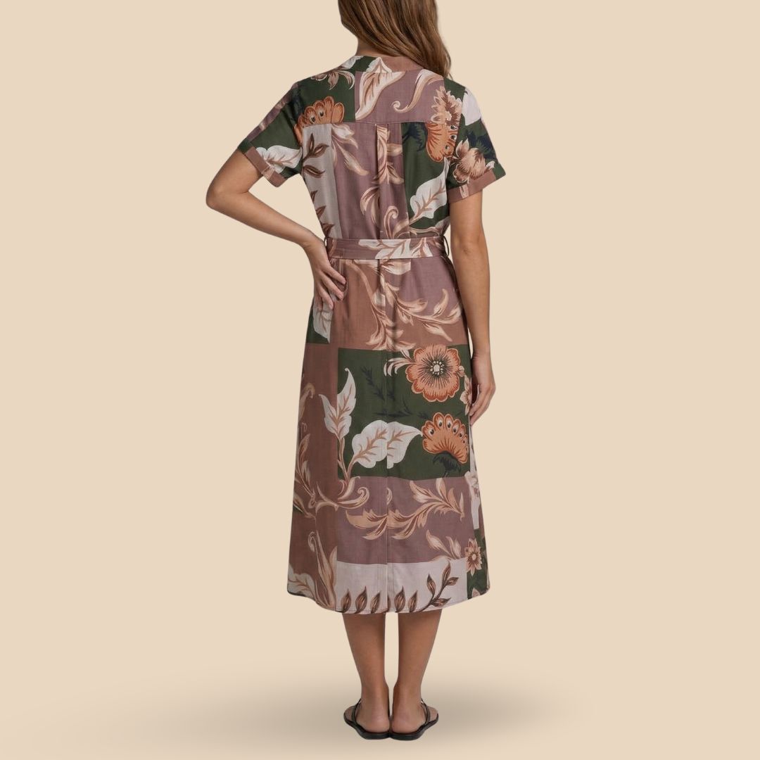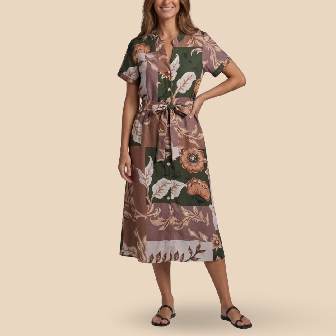 Vestido largo camisero con botones y mangas. Escote V, pasa-cinto en la cintura y bolsillos laterales 🌟