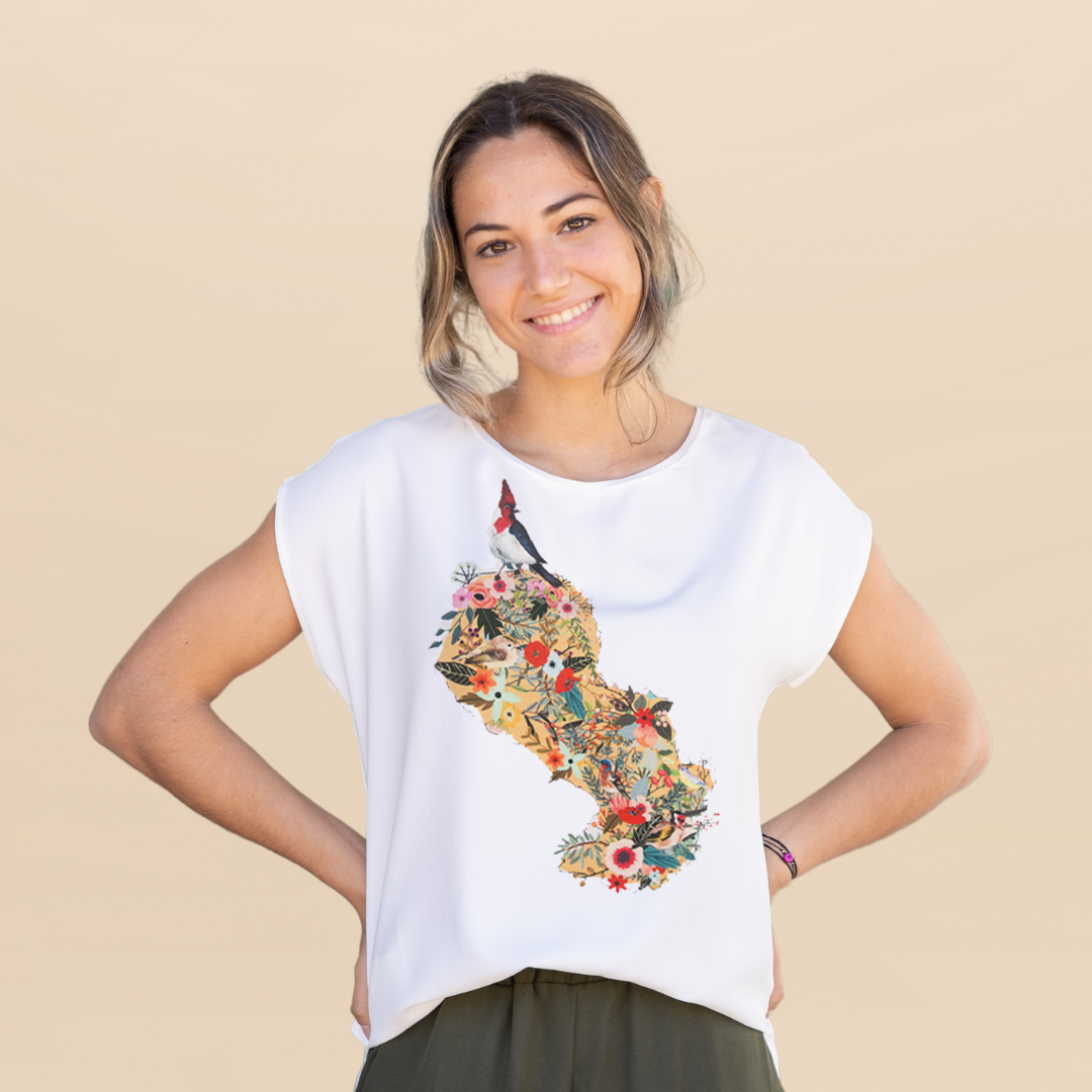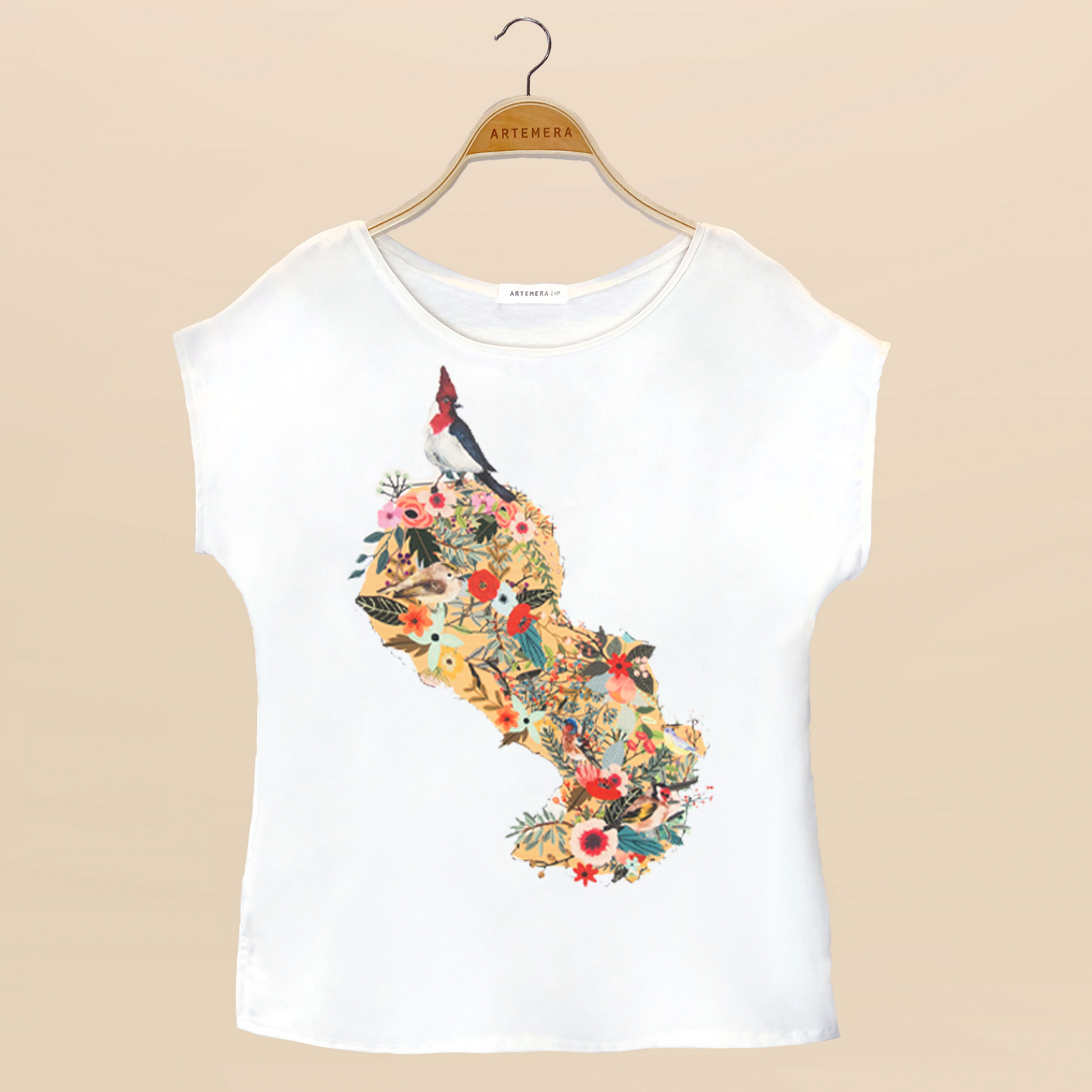 Artemera Mapa del Paraguay con Flores y Cardenal