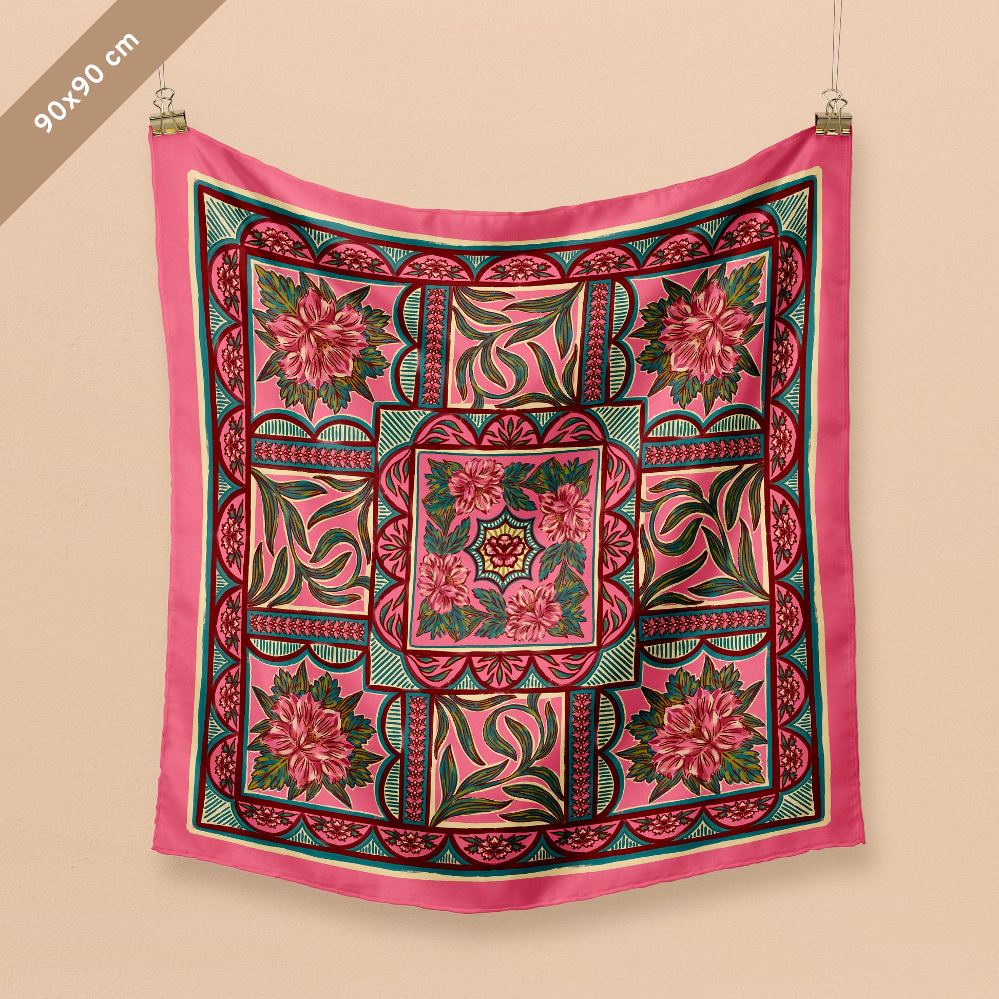 Los más pedidos, pañuelos más grandes 🤩 Un accesorio único que combina el arte con elegancia y estilo, con una estampa vibrante en tonos rosa, verde y coral ❤