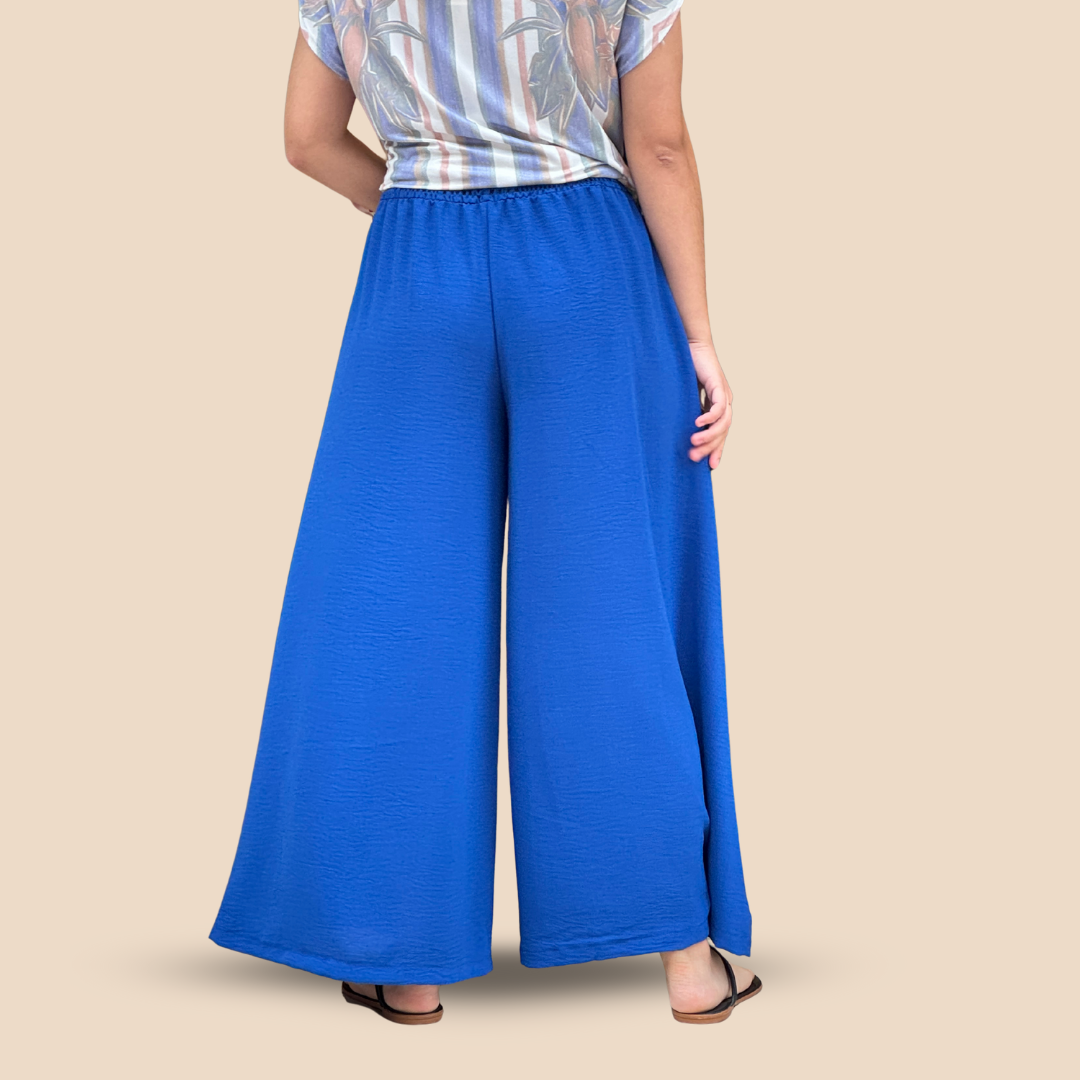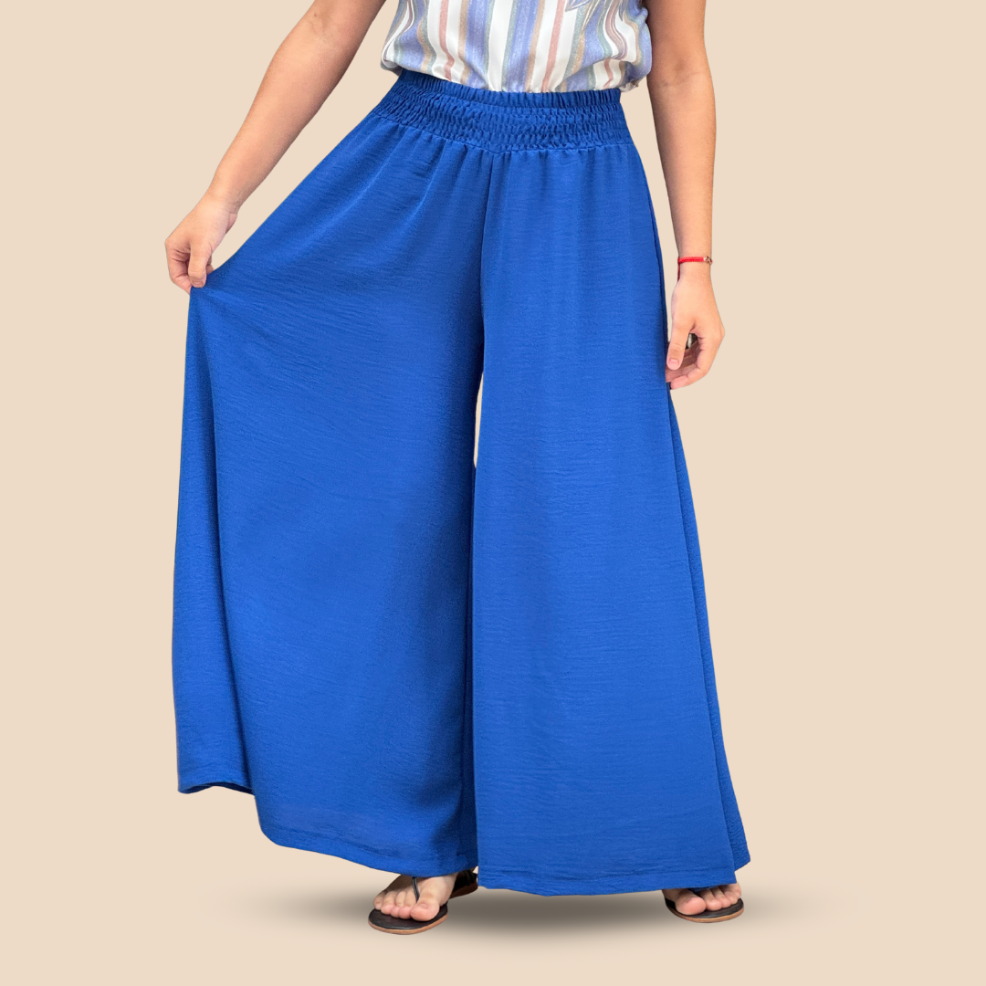 El palazo cintura alta mas cómodo con una banda elástica fruncida, cómodo y flexible para distintas tallas. El tejido ligero y de gran caída crea una silueta estilizada y relajada.