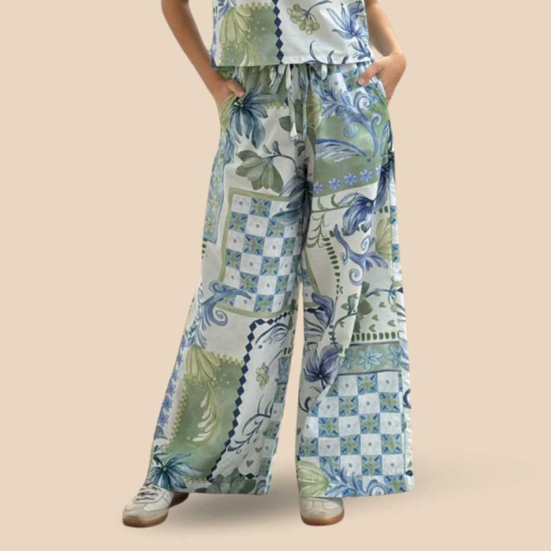 LÍNEA M 🦋 | Pantalón estampado con cintura engomada y cinta ajustable, corte recto que estiliza y acompaña tu movimiento.
