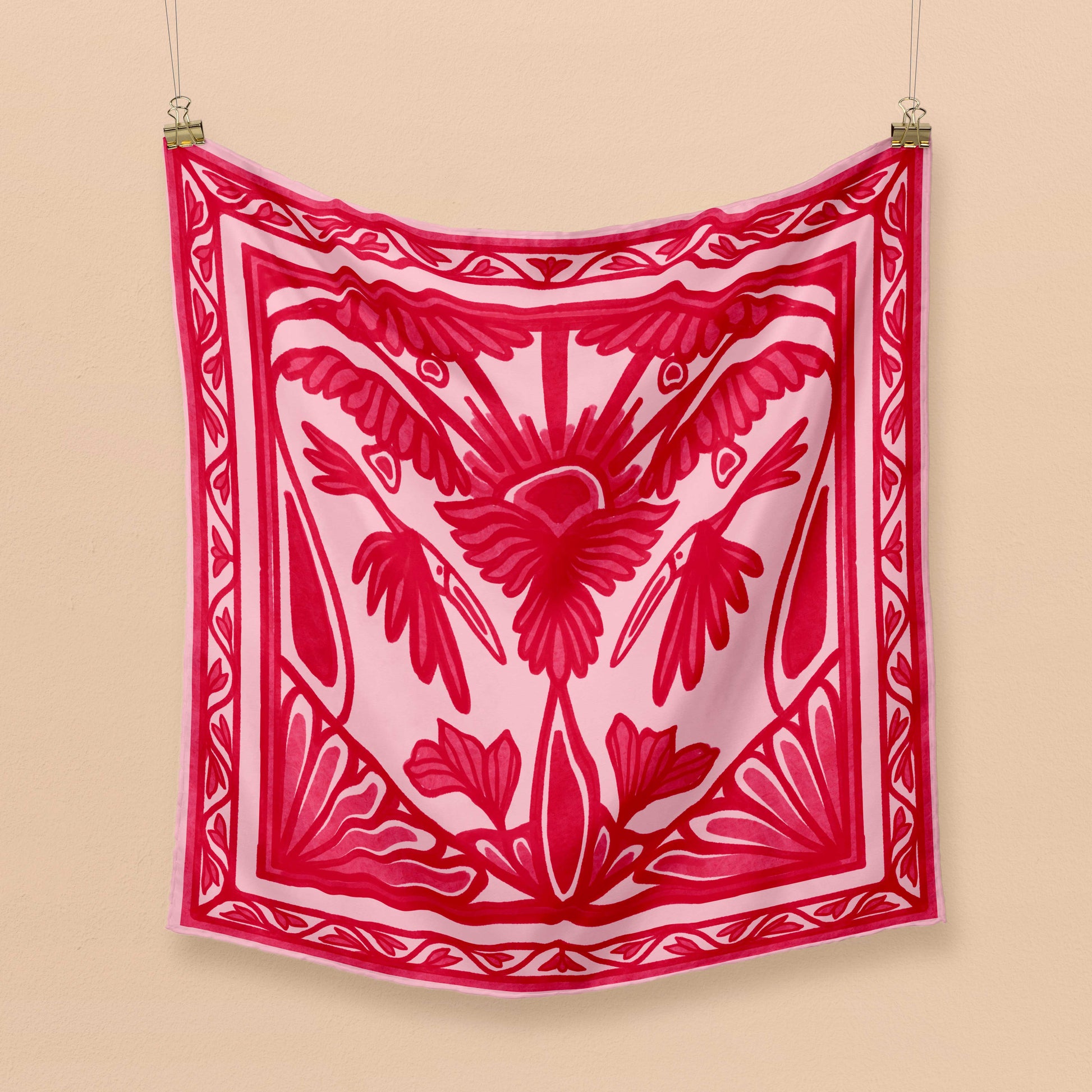 Pañuelo monocromático en tono fucsia, con figuras diseñadas exclusivamente por Artemera.