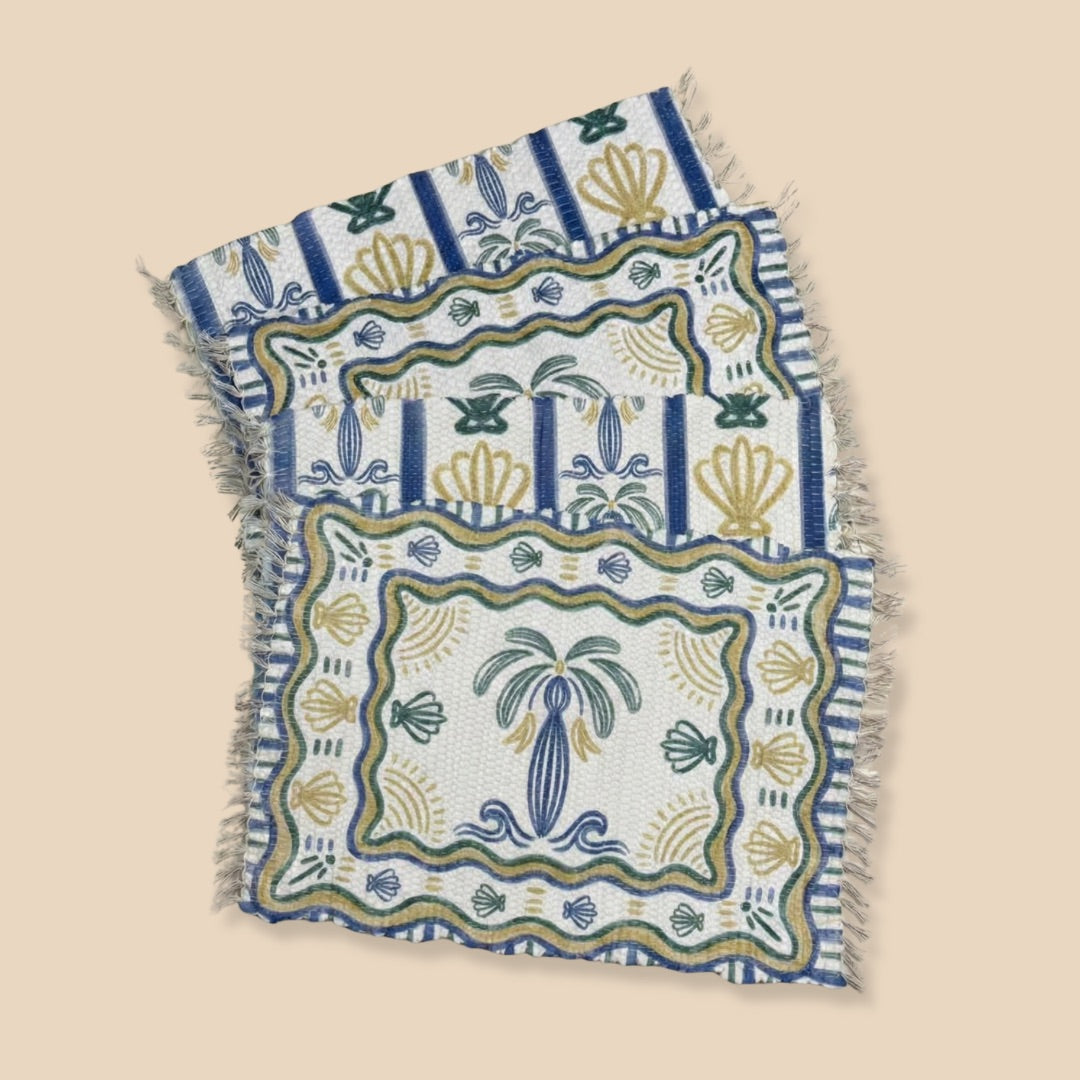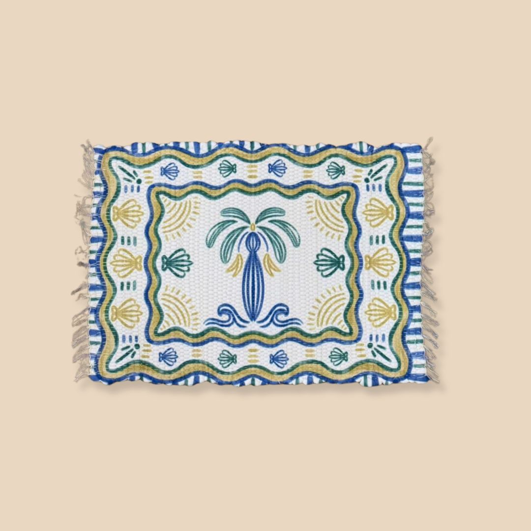 Belleza y armonía en tu mesa 😍 Con una estampa de inspiración natural, protagonizada por una palmera central y detalles orgánicos en tonos suaves que transmiten frescura.