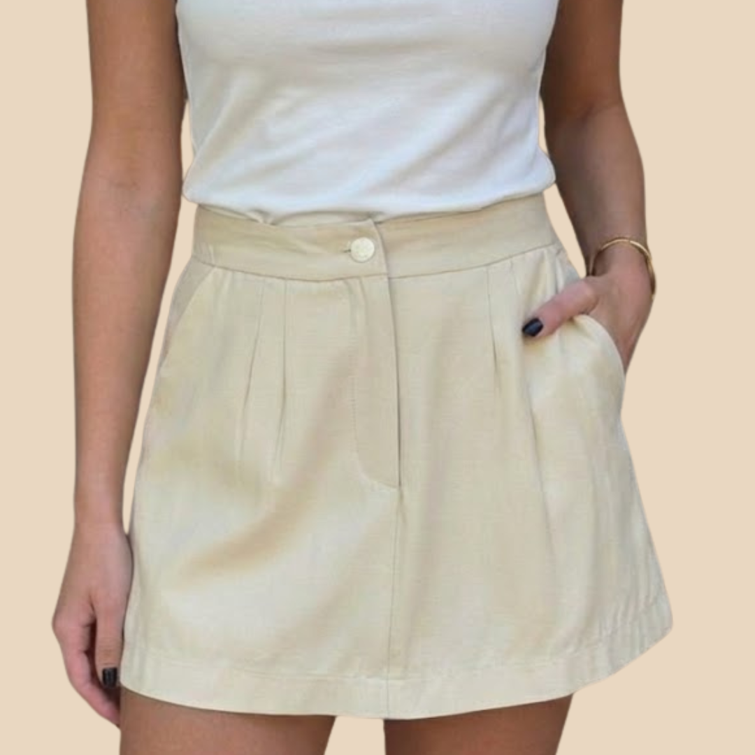Short pollera con bolsillos delanteros, cierre y botón ✨